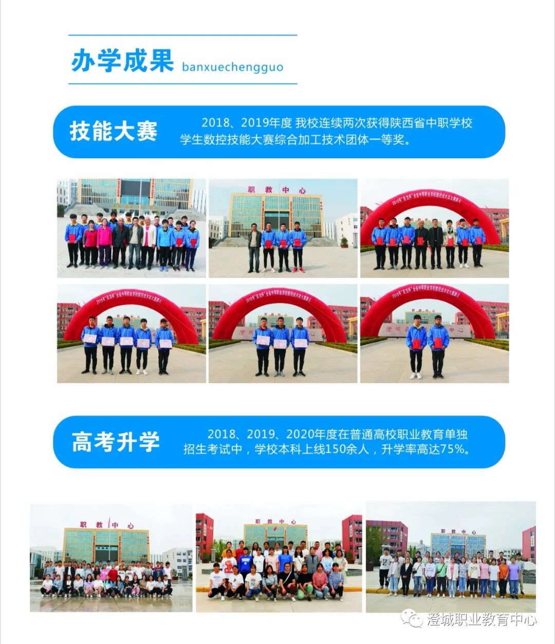 随着国家教育方针、教育政策的调整,成才已不再是考上高中同学的专利,它赋予中等职业学校学生的是更多的成功机会。相信大家通过认真的对比,会发现,读自己家门口的职业学校更安全、更实惠、更有机会获得成功。青春无价,适合自己的就是最好的路。凝心聚力再出发,砥砺奋进新征程。澄城职教中心是您梦想启航的地方!